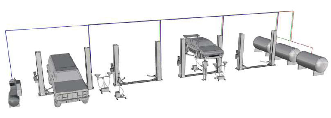 With the correct plumbing system, which we can install, the tools simply plug in to the outlet ports on each leg of the pipework and the onboard pumps move the recovered fluids out of your building to outside storage tanks. One set of tools is normally enough to cover 4 vehicle lifts.
