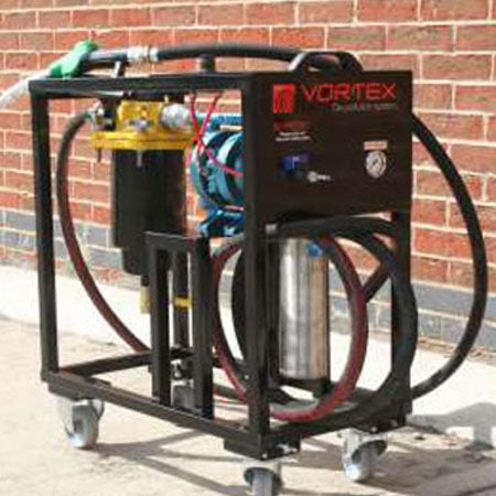 The Vortex Fuel Tool powered by compressed air punches through the fuel tank. On our punch There is a complete seal around the fuel tool head and this solution allows fuel to be inspected for dirt or contamination. We can fit the fuel tool with a manual fuel diverter option to separate clean and dirty gas for pumping to a tank or other gas collection vessel. Our proven fuel punch head is connected to the on-board pump. The pump is a hi-speed air powered double diaphragm pump to EX UL specification used in the system for a safe, reliable & speedy extraction of fuel. Ideal for full-service auto recycling yards to move between bays for fuel extraction.View