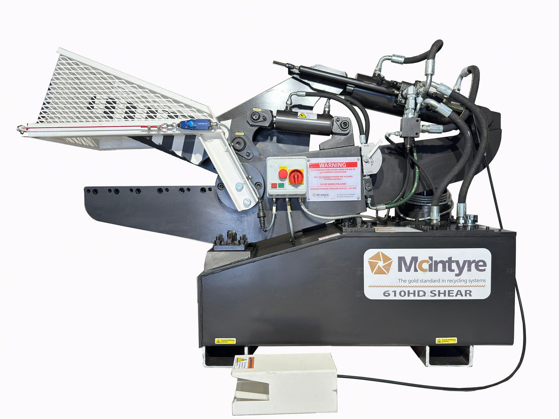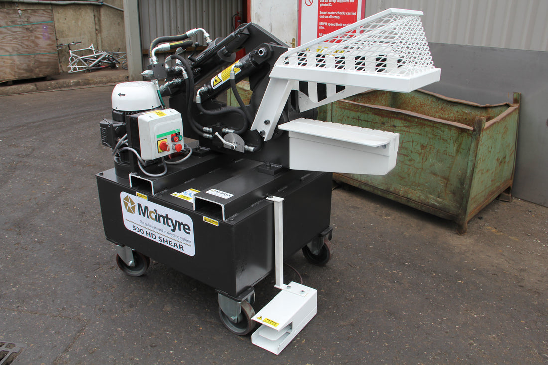 Developed from the well known McIntyre range, JMC alligator shears were originally designed to withstand the rigors of scrapyard use, making them suitable for cutting scrap metal and any industrial application. Blades vary from 150mm to 920mm. Alligator shears can be supplied with diesel or electric motors and some larger units can be solenoid controlled to enable them to be incorporated into complete systems.